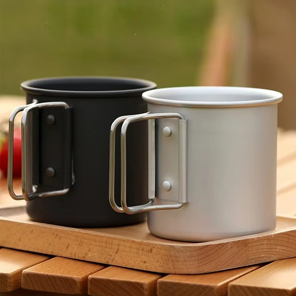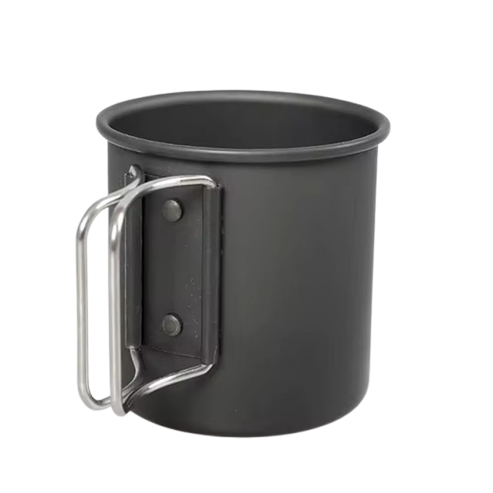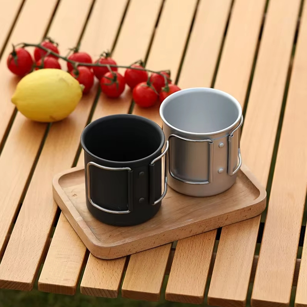 black Titanium Cup 300ml, Ultralight Outdoor Cooking Portable Mug with Folding Handle Picnic Cup Hiking Camping Cups Mugs Fireproof