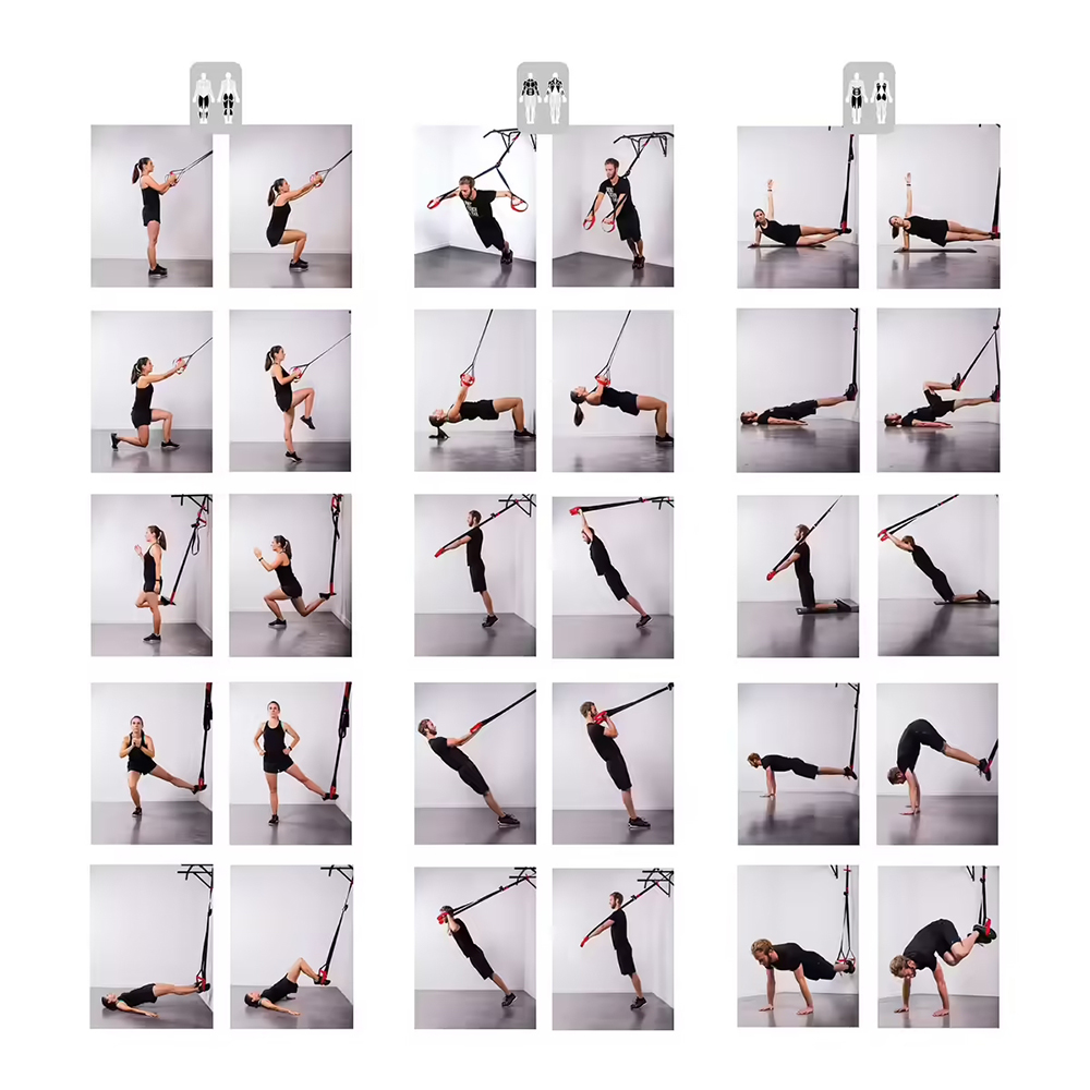 - With these suspenders, which are easily adjustable and easy to carry, thanks to their cover, you can exercise both on vacation or travel, as well as at home. And if you’re out of ideas, scan the QR code!