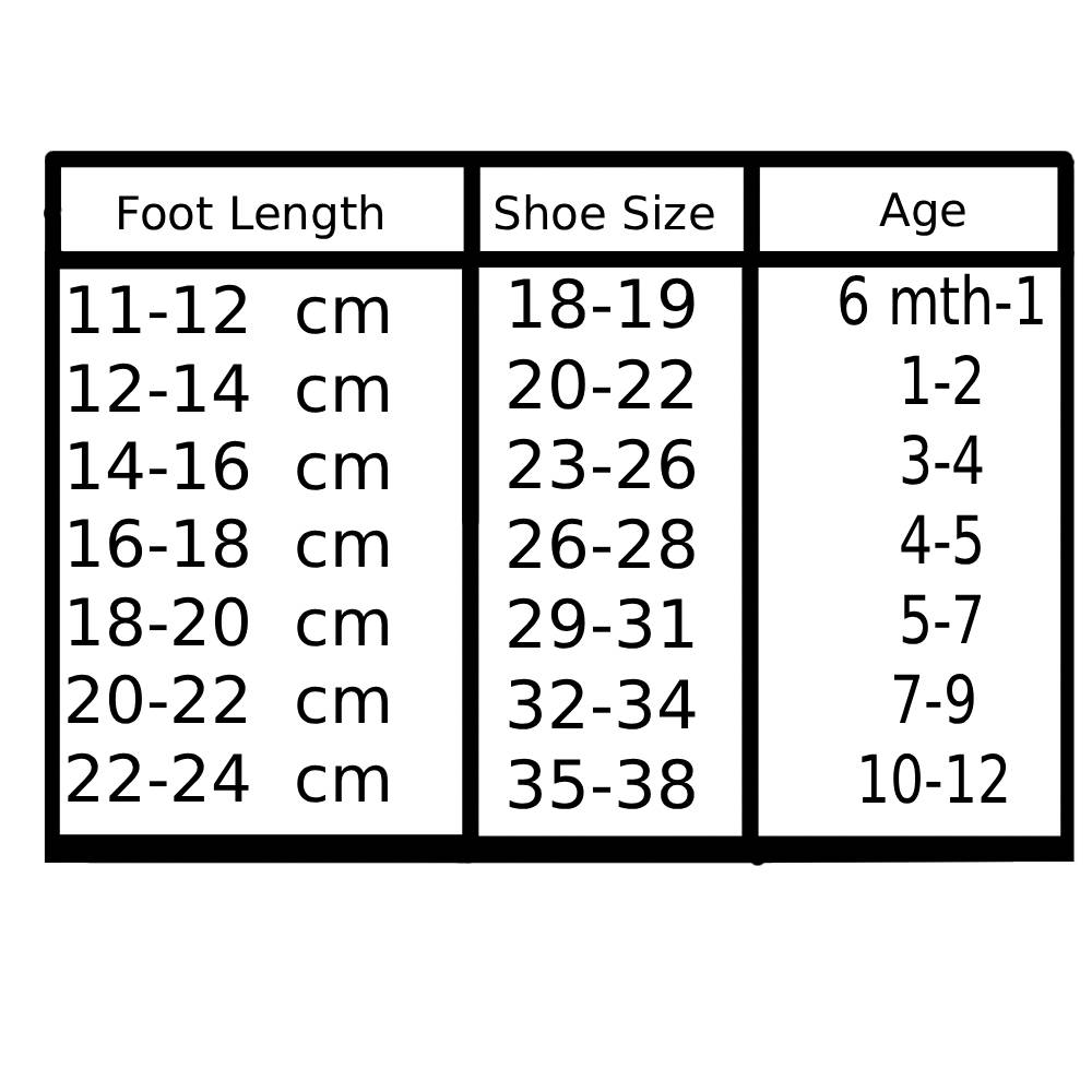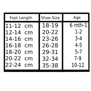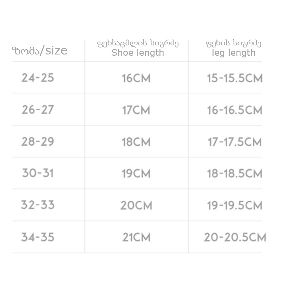 | Shoe length (size): | 16 cm, 17 cm, 18 cm, 19 cm, 20 cm. |