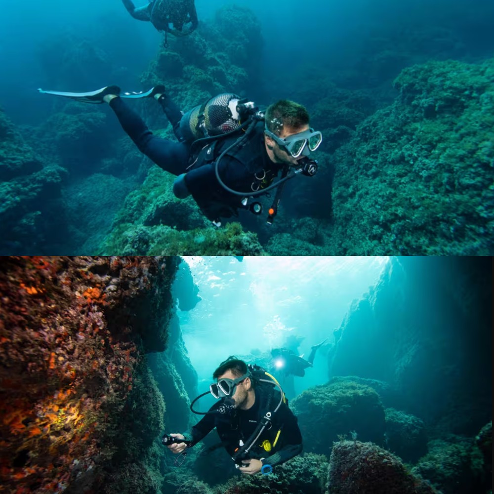 The mirror lens version helps reduce brightness, notably in the more shallow zones or at the surface.