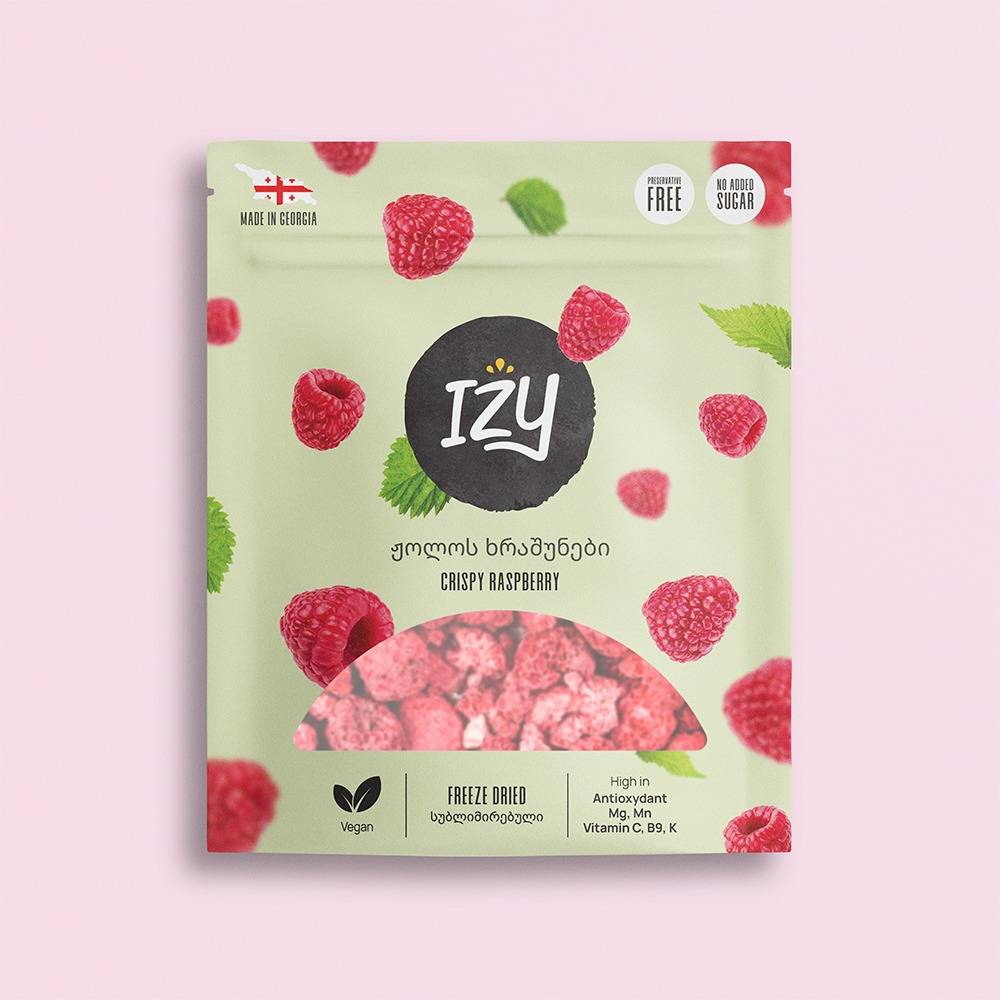 - Izy’s raspberry crisp is ideal for all tastes, especially for children – it is rich in nutritional value, crispy and delicious, and most importantly, 0% added sugar and 100% natural. Enjoy Izy’s products in any environment.