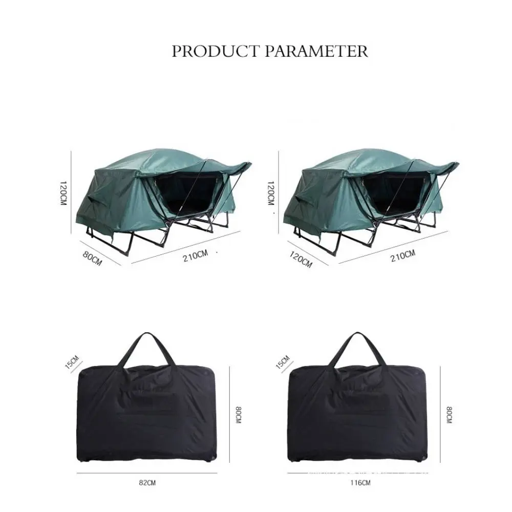 კარავი საწოლი დასაკეცი საკემპინგო კარავები , ამაღლებული კარვის საწოლი საკემპინგო საწოლით, დასაკეცი ალუმინის ჩარჩოთი, გარე კემპინგისთვის და ლაშქრობისთვის, ერთადგილიანი/ორადგილიანი