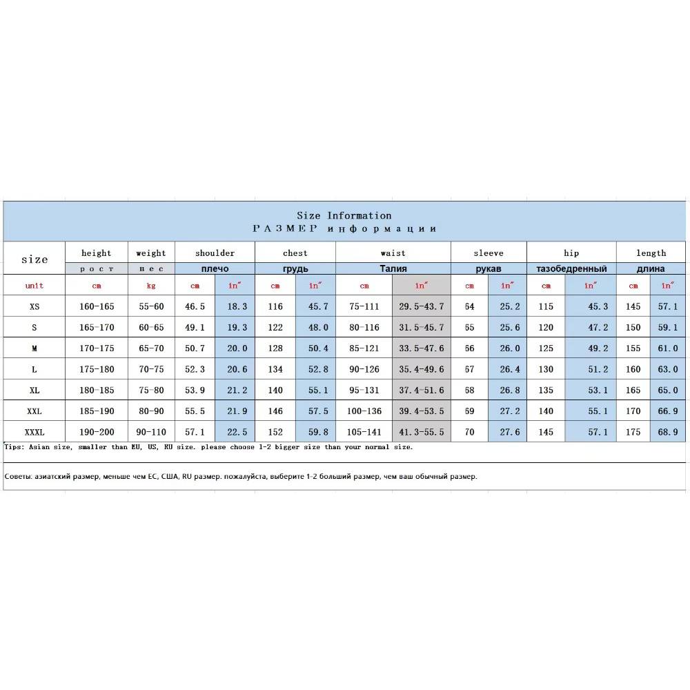 | ზომა (მხრების): | XS (46.5 სმ), S (49.1 სმ), M (50.7 სმ), L (52.3 სმ), XL (53.9 სმ), 2XL (55.5 სმ), 3XL (57.1 სმ). |