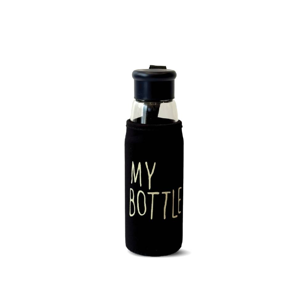 წითელი თერმობოთლი 500 მლ My Bottle ბოთლის ქეისით ცხელი და ცივი სასმელებისთვის. შუშის ეკო ბოთლი წყლისა და სხვა სასმელებისთვის