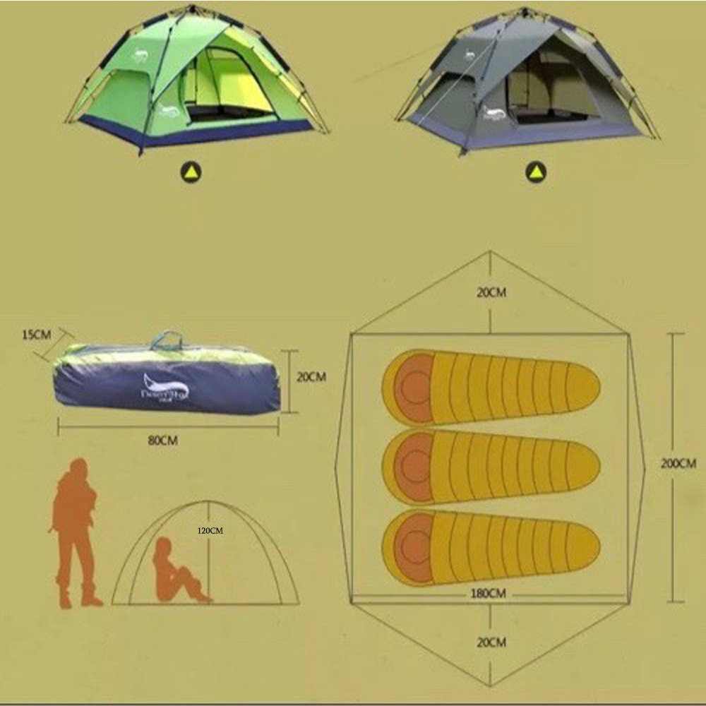 ავტომატურად გასაშლელი სალაშქრო კარავი (3 ადგილიანი) DesertFox, სალაშქრო კარვები/ტენტები, წყალგაუმტარი კარავი ლაშქრობისთვის, პიკნიკისთვის