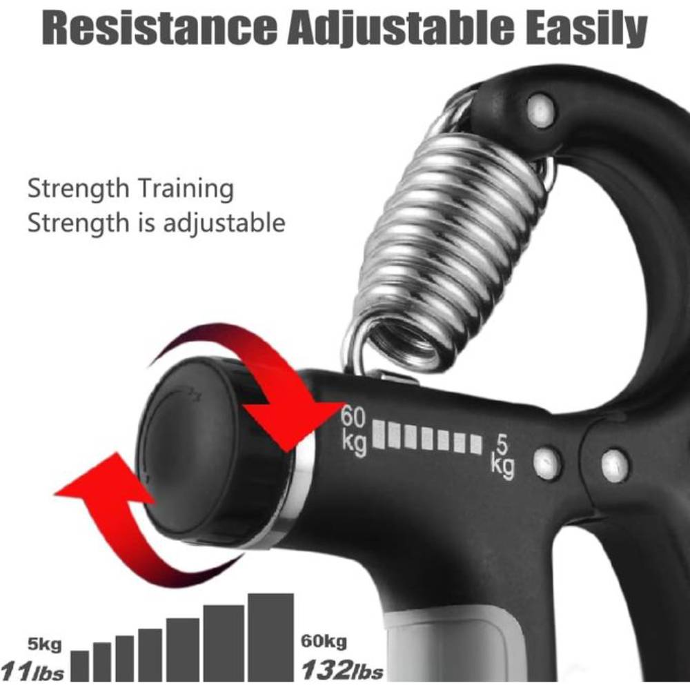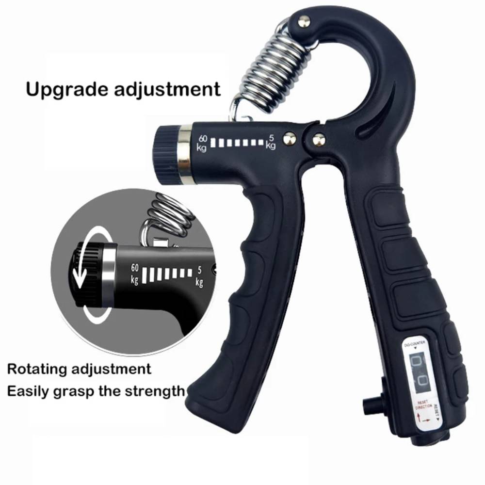 ესპანდერი რეგულირებადი ხელის სახელურების გამაძლიერებელი, წინააღმდეგობის – 5-60 კგ (პლასტმასი) | წინამხრის და თითების ვარჯიში | ჩაშენებული მრიცხველი | ერგონომიული, პორტატული, მსუბუქი | (უნისექსი)