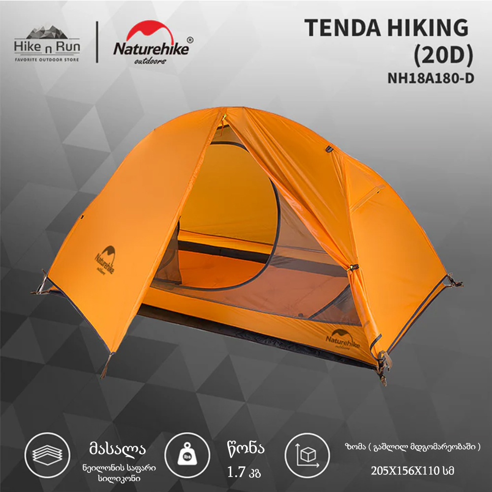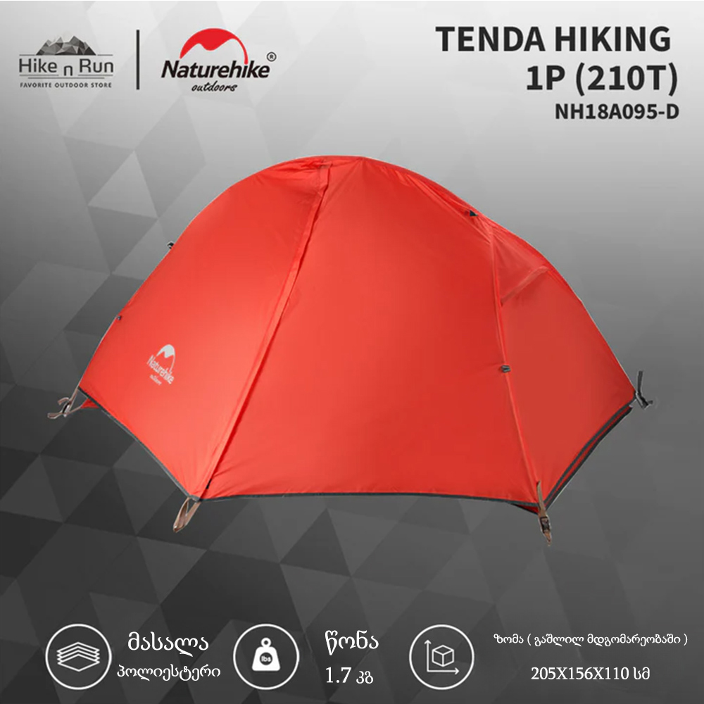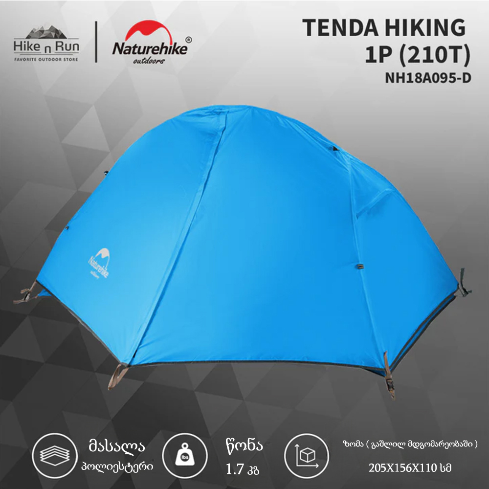 კარავი 1 კაციანი NatureHike NH18A095-D სალაშქრო კარვები, სალაშქრო ინვენტარი, პორტატული კარვები, ულტრამსუბუქი კარავი/სალაშქრო