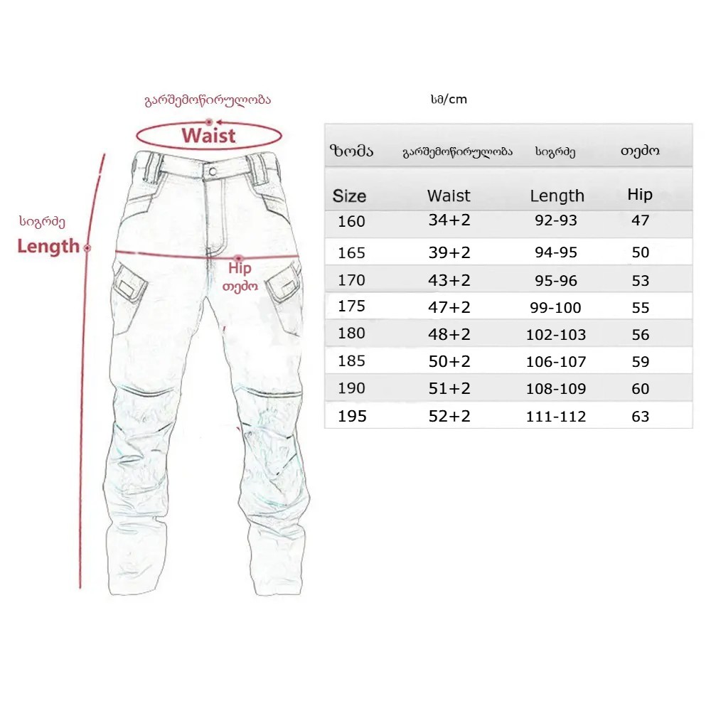 | ზომა: | 160სმ; 165 სმ; 170 სმ; 175 სმ; 180 სმ; 185 სმ; 190 სმ; 195 სმ; |