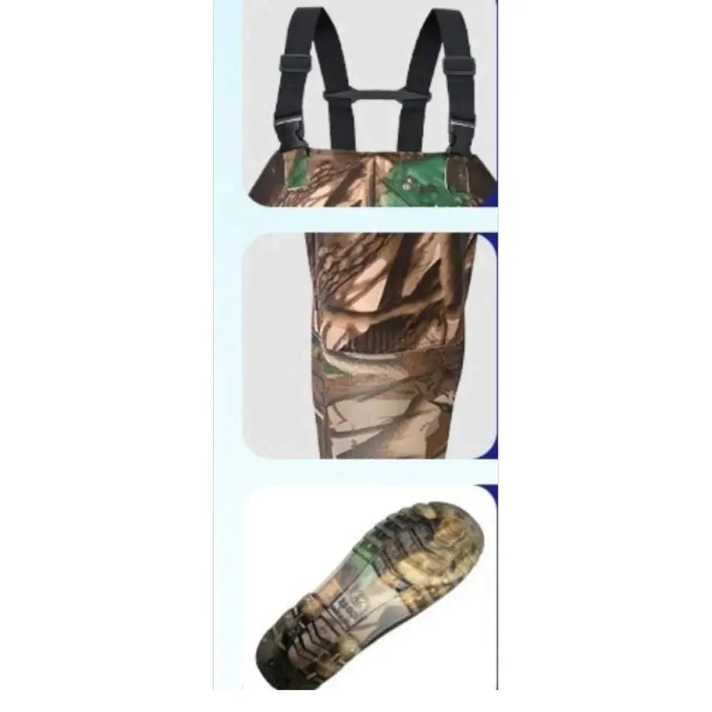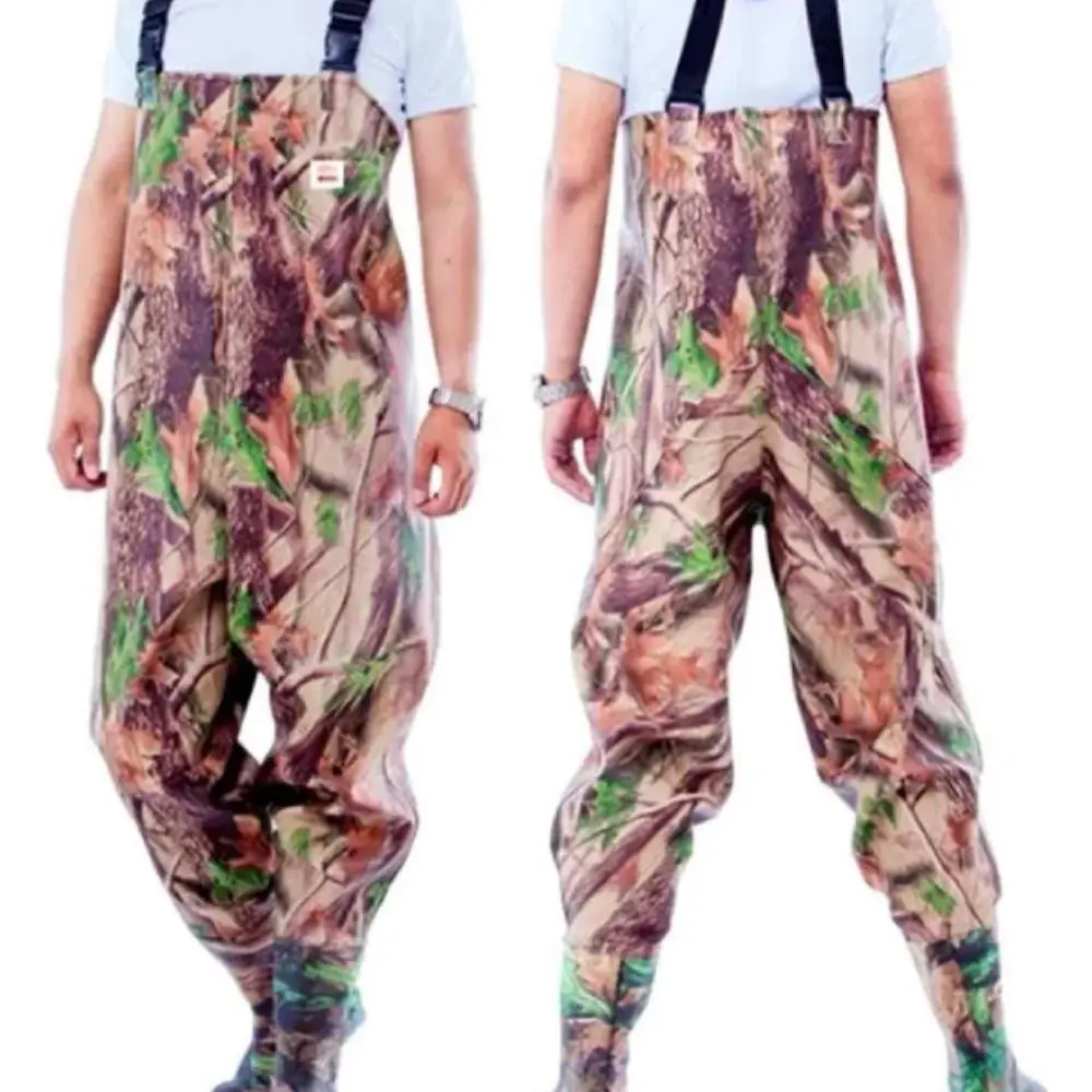 რეზინის კომბინეზონი თევზაობისა და ნადირობისთვის, კომუფლირებული ჩექმებით