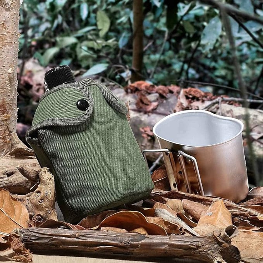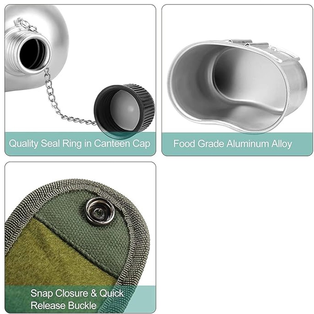 მათარა 1,3ლ. ალუმინის სამხედრო ლაშქრობის, ქვაბი საჭმლის მომზადებისთვის ტურიზმის, მოგზაურობისთვის/სალაშქრო/პორტატული ალუმინის სამხედრო წყლის ბოთლი ჭიქით და სახურავით/ჭიქა, ჭიქები (მათარა, ჭურჭელი,კოლბა)