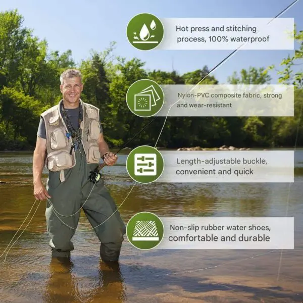 Рыболовный комбинезон, нейлон 70D с силиконовыми вставками, охотничий комбинезон с ботинками, водонепроницаемые рыболовные брюки из ПВХ с регулируемыми плечевыми ремнями.