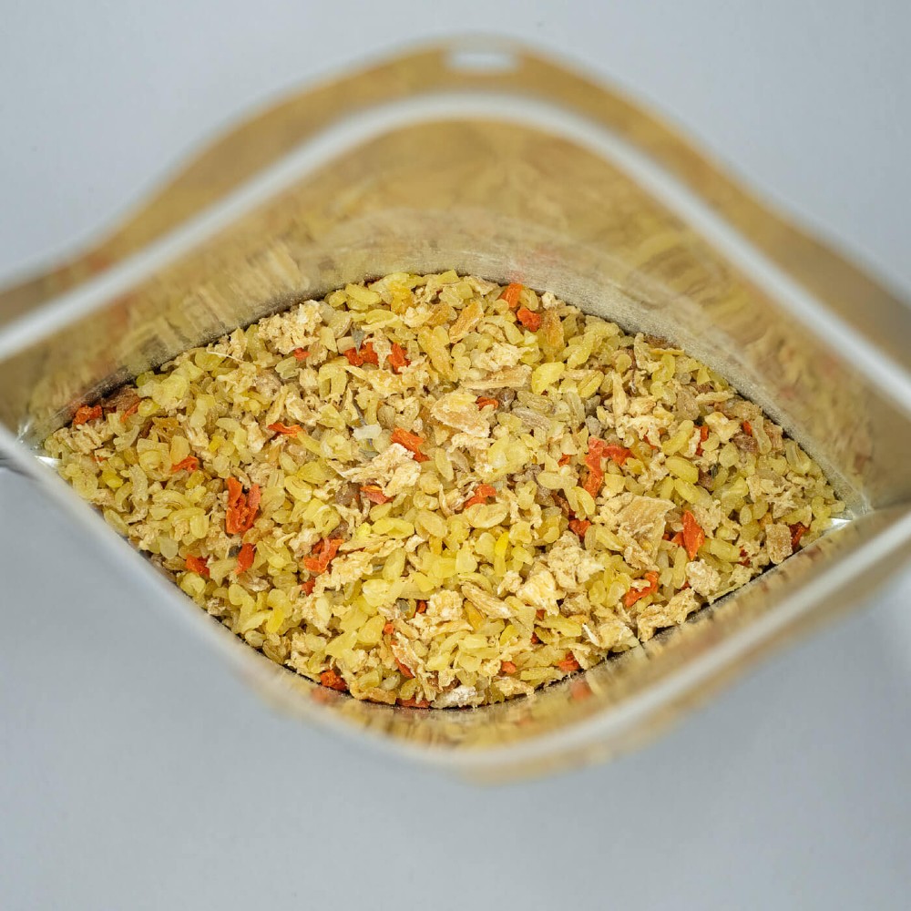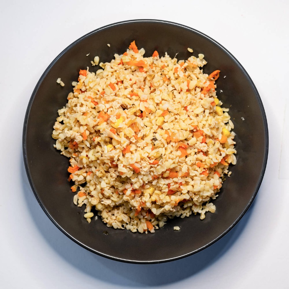 | Ингредиенты (мясо): | булгур (63%), куриное мясо (21%), морковь (5%), кукуруза (5%), лук (3%), приправы. |