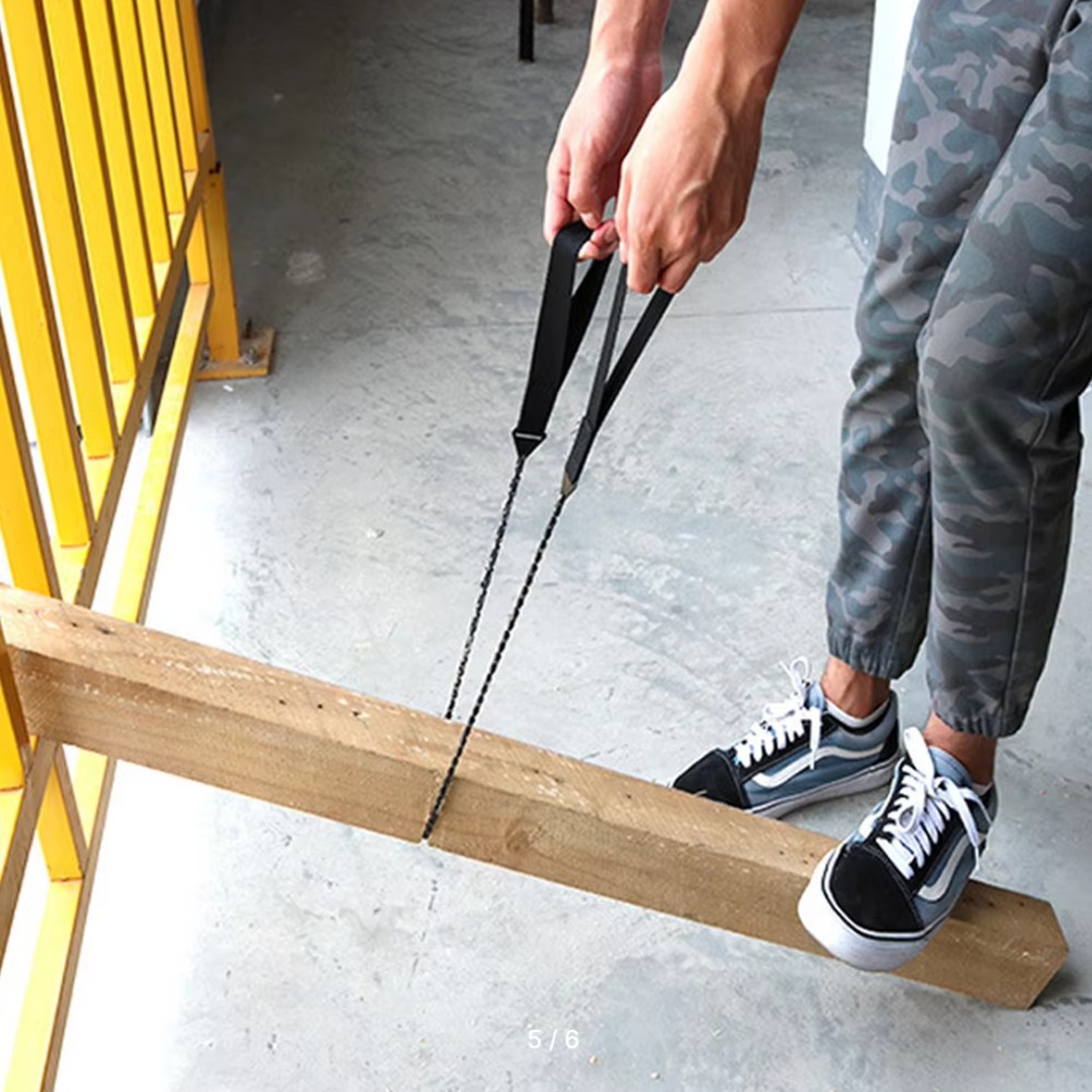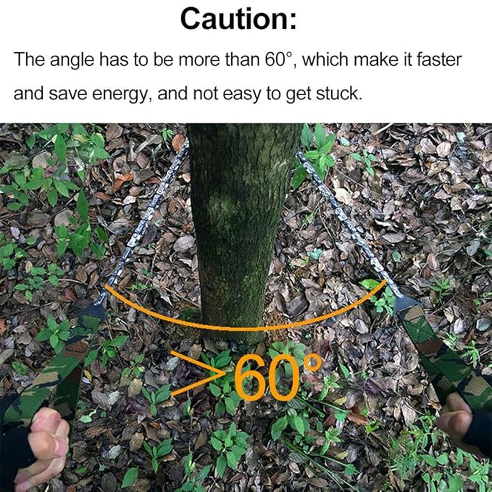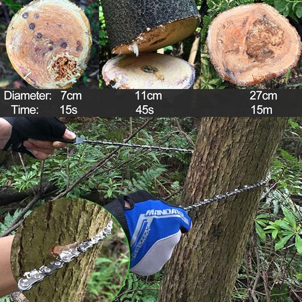 Цепь ручной пилы имеет острую и эффективную режущую кромку, которая может оставаться острой в течение длительного времени, что делает ее идеальной для рубки дерева в ситуациях выживания и приключений на свежем воздухе.