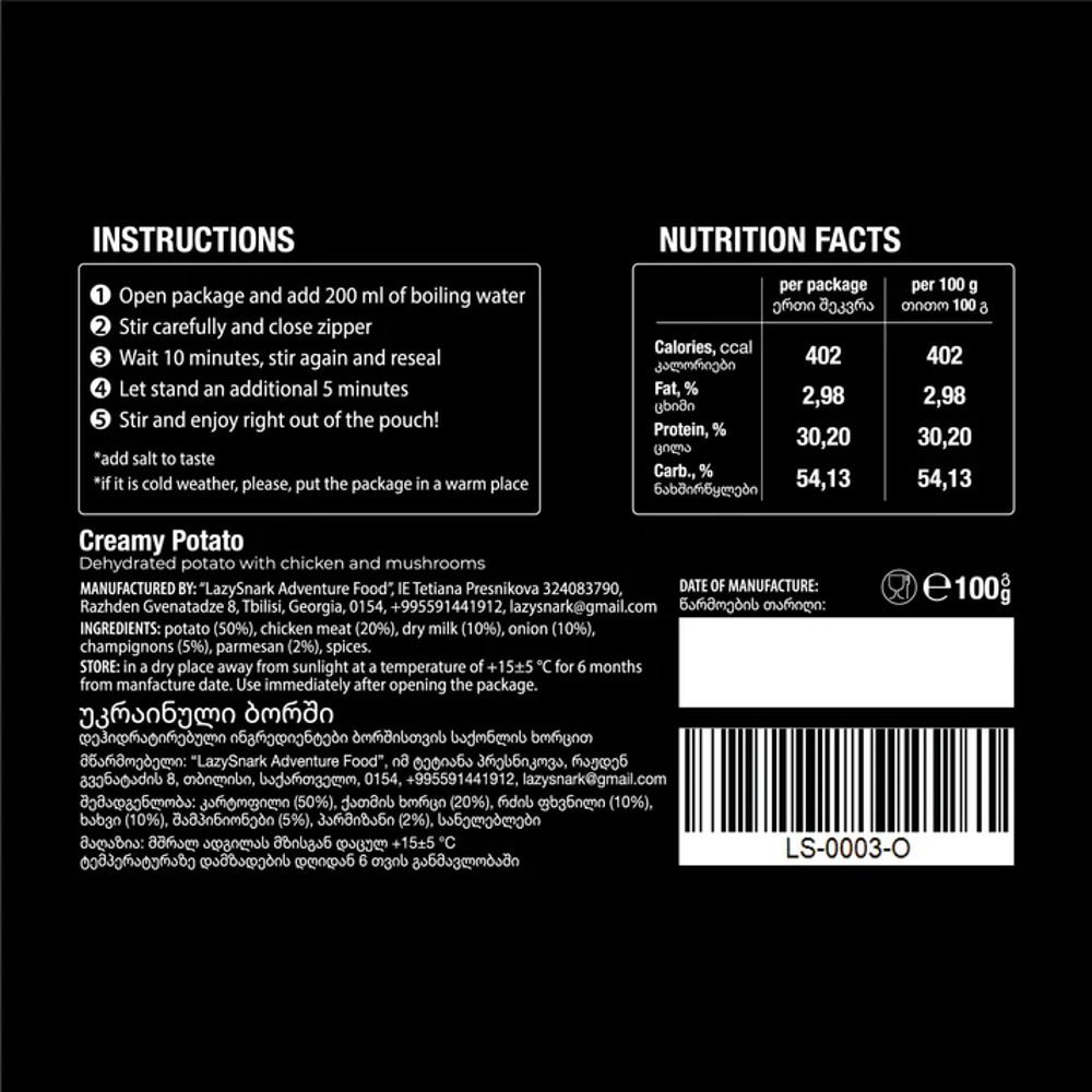 (Сливочный картофель) Быстрая еда/походное туристическое питание/быстрое питание LazySnark Adventure Food