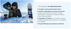 | Упаковка: | алюминиевый дой-пак с замком-молнией. Упаковка предназначена для заваривания пищи внутри. |