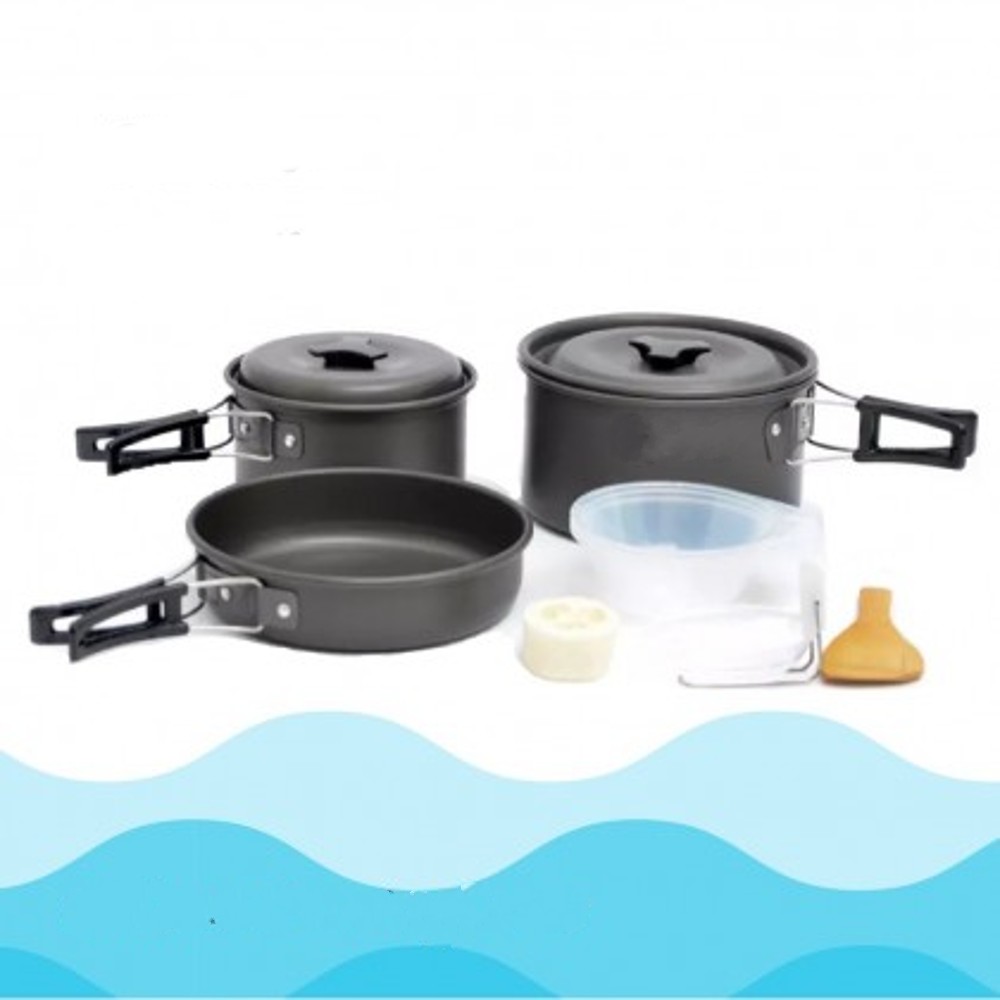 Набор походной посуды для 2-3 человек DS-300 /Набор посуды для походов на 2-3 человека (посуда), кастрюля, кастрюля, чайник, походная посуда, кухонный набор для пикника, набор кастрюль и сковородок